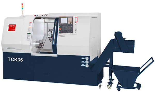斜床身數控車床是一種高精度、高能效的自動化加工設備,其床身導軌平面與地平面呈傾斜角度(如3...